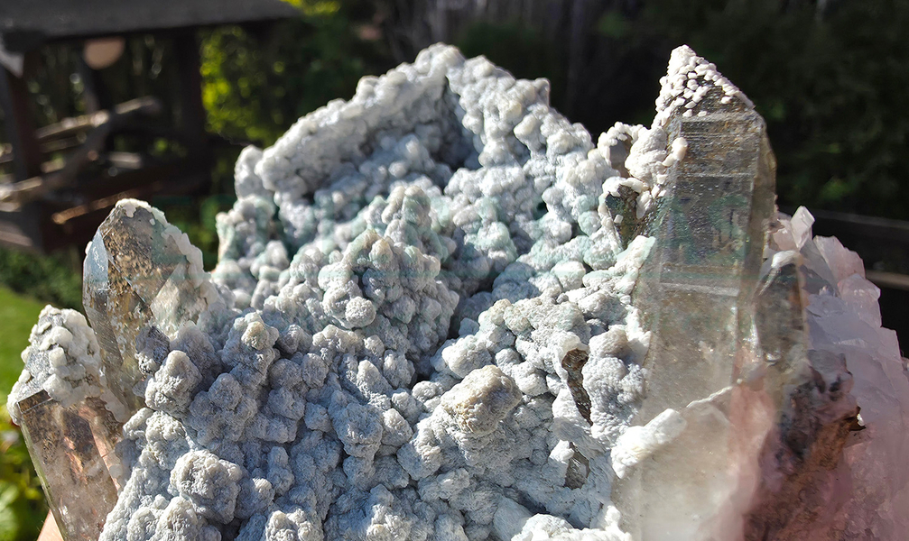 • Tato lokalita nabízí vzorky s povlakem narůžovělého lepidolitu, který dodává celému vzorku krásnou narůžovělou barvu.